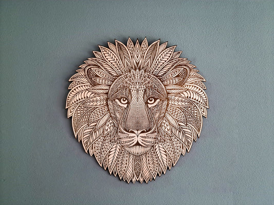 Lion The King Wood Wall Art - Engraved Mandala Lion Wall Decor - Unique Burning Art Gift for Friends and Home