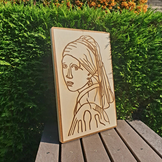 Lady with Pearl Earring Handmade Wood-Burning Craft