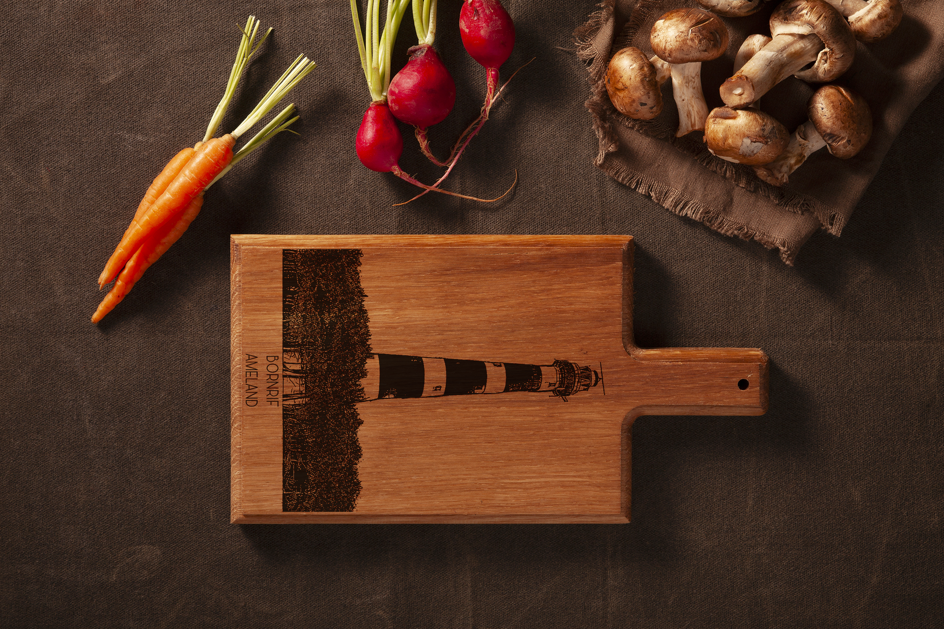 Inspired by the iconic Bornrif Lighthouse, this handcrafted cheese board brings a piece of Ameland into your home. Each board is made from premium beech wood and features a detailed, hand-drawn engraving of the Bornrif Lighthouse, capturing the charm of this beloved landmark.