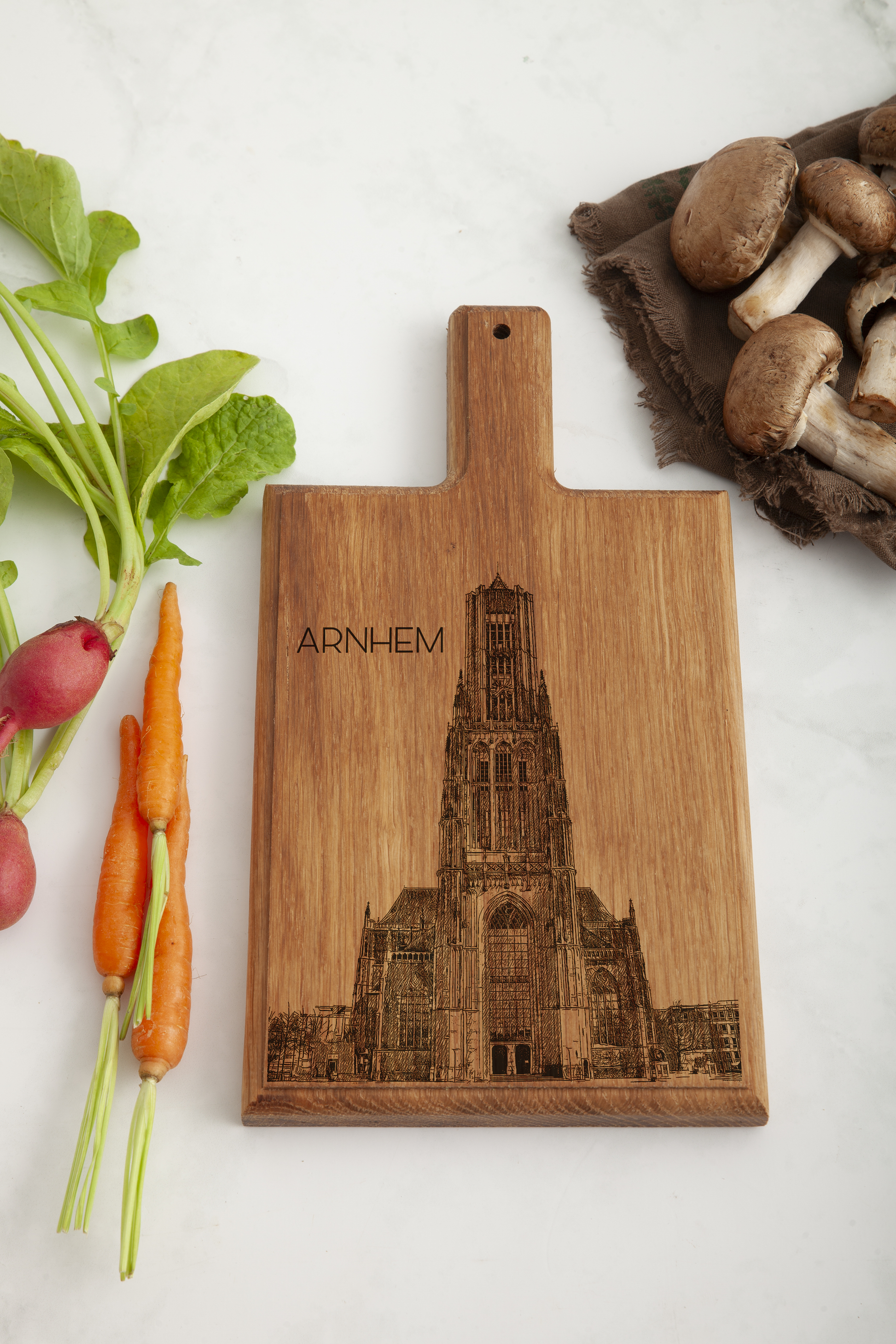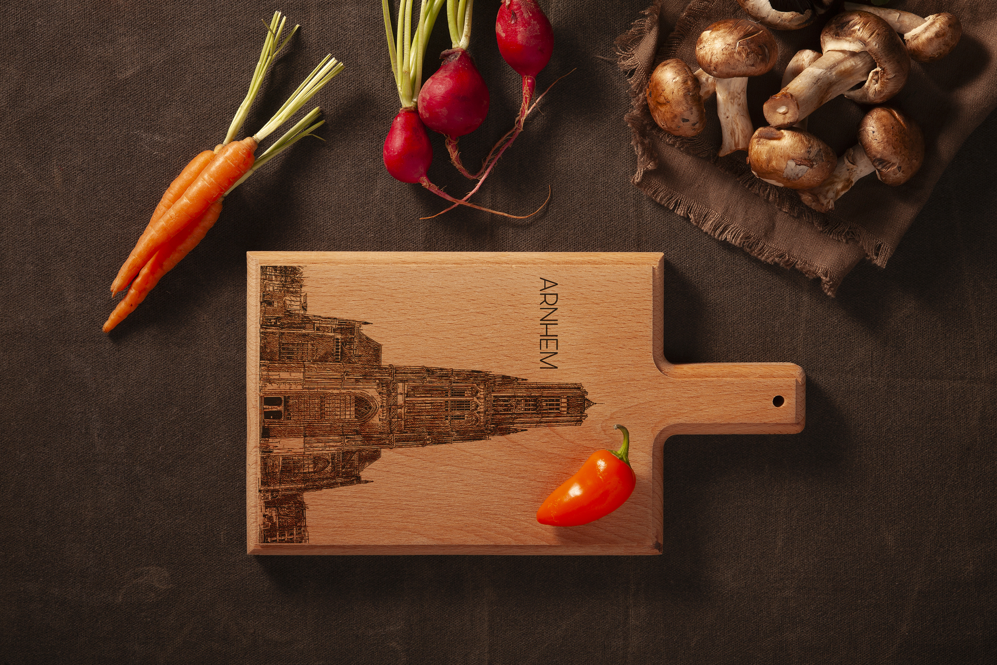 Inspired by the historic city of Arnhem, this beautifully crafted cheese board brings a touch of Dutch culture into your home. Made from premium beech wood, it features a detailed, hand-drawn engraving that pays tribute to Arnhem’s landmarks and charm, adding sophistication to your dining experience.