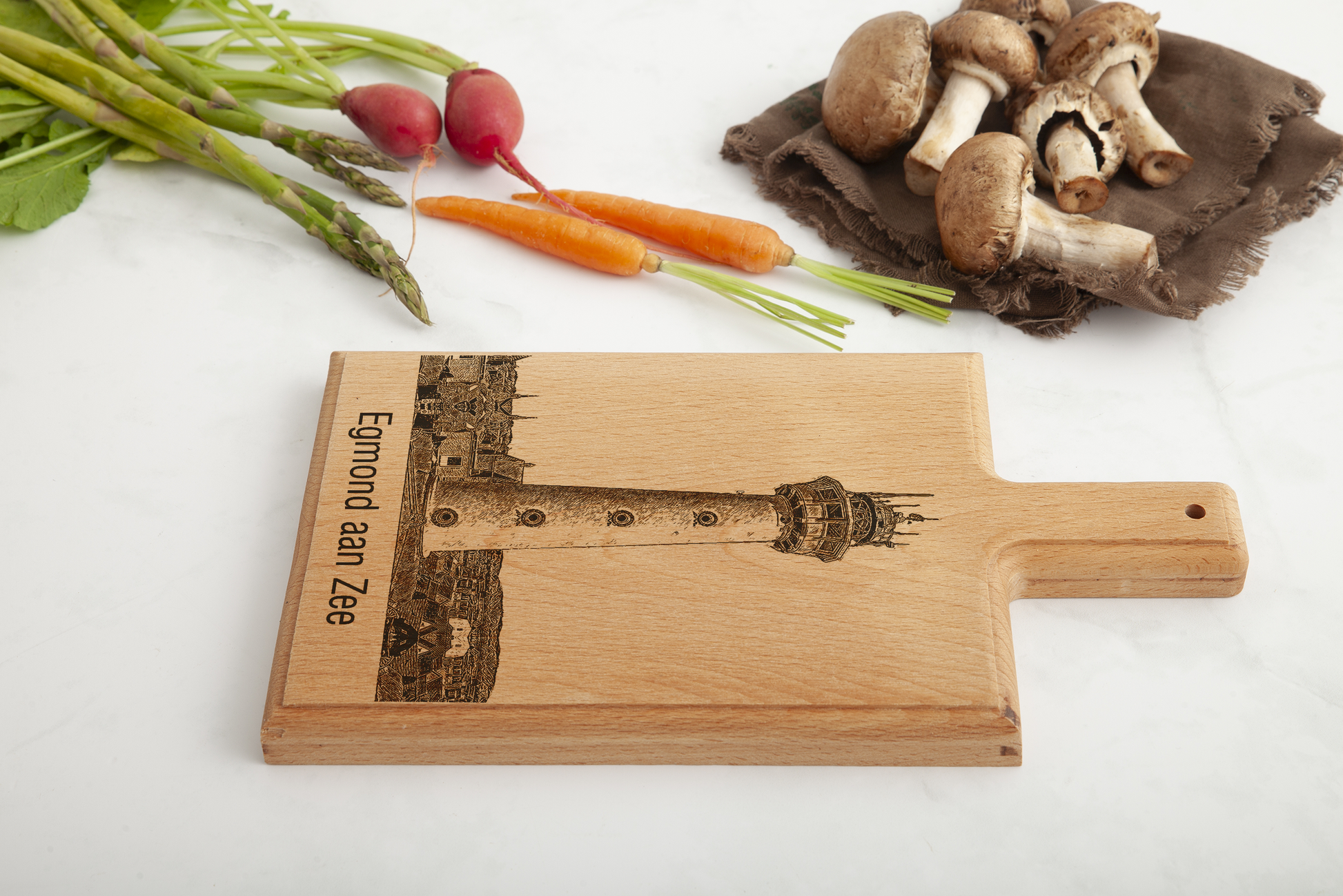 This cheese board is more than a kitchen accessory; it’s a tribute to the iconic Vuurtoren of Egmond aan Zee, ideal for personal use or as a thoughtful gift.