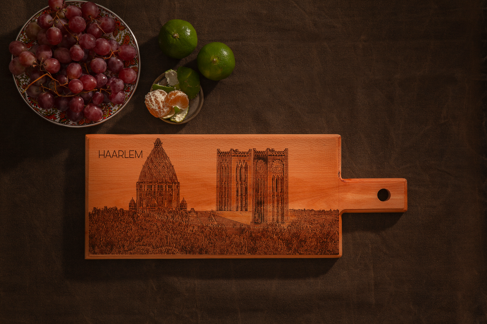 Designed as both a presentation board and a decorative object, this board is ideal for serving cheese, tapas, or small bites, while also making a timeless statement in your kitchen or dining space. With its balanced size of 49 × 17 cm and minimalist design, it blends functionality with Dutch heritage. A meaningful gift for Haarlem lovers or a refined addition to your own home.