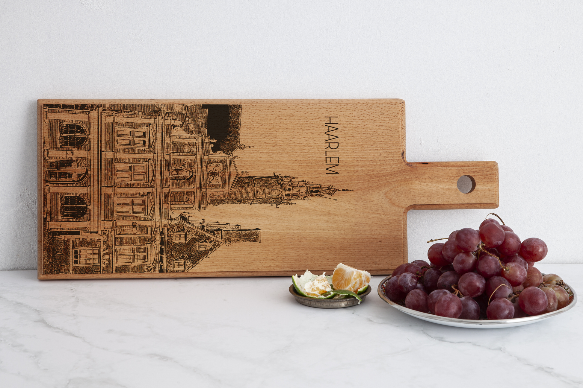 Designed to be both functional and decorative, this presentation board is perfect for serving cheese, tapas, or small bites, while also working beautifully as a statement piece in your kitchen or dining area. The clean lines and balanced proportions (49 × 17 cm) make it ideal for everyday use or special occasions. Whether as a gift or a personal keepsake, this board celebrates Haarlem’s rich history with timeless craftsmanship.