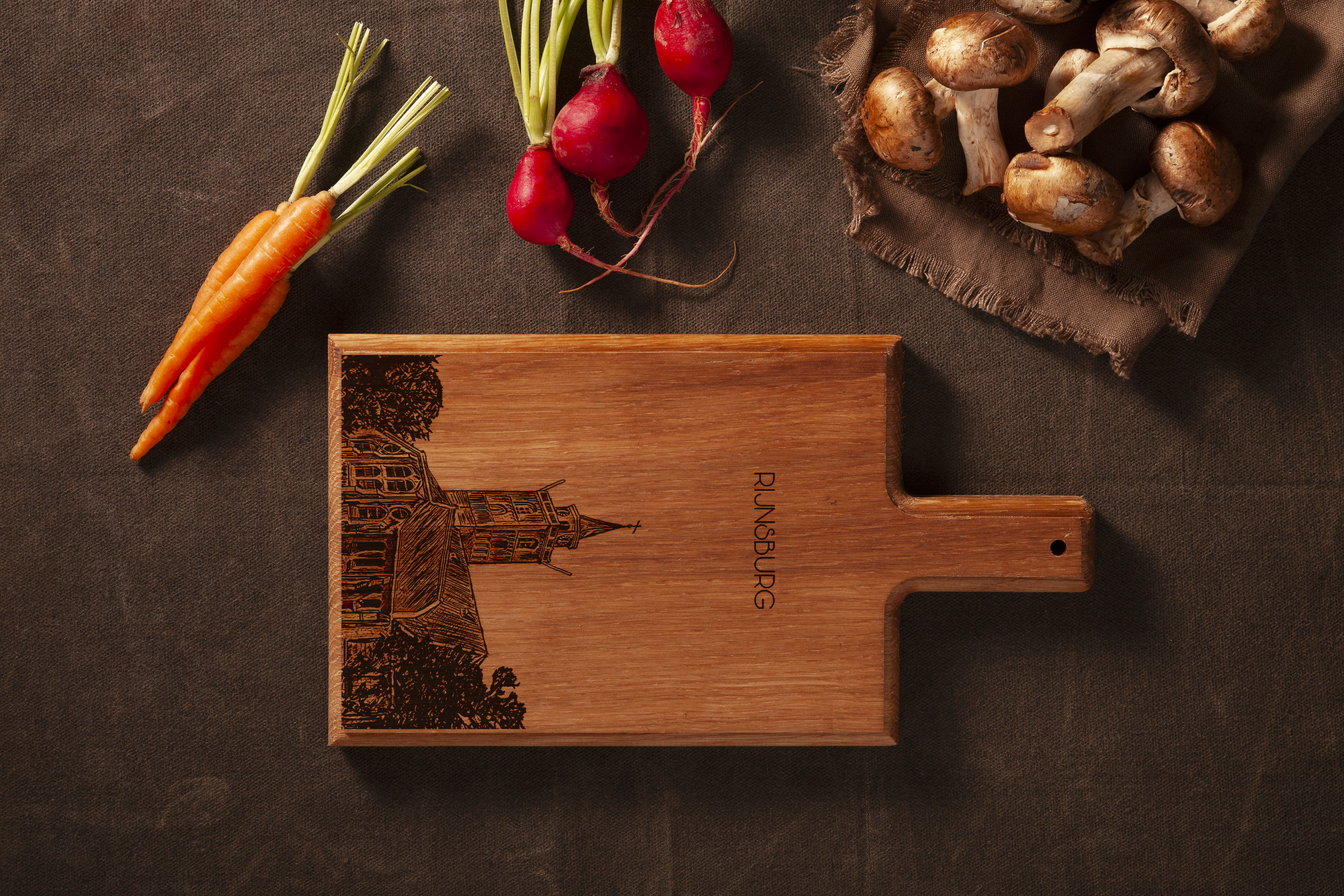 Celebrate the architectural beauty of Rijnsburg with our finely crafted cheese board, featuring an intricate engraving of the Grote Kerk. Each board is meticulously handmade from premium beech wood, incorporating our original hand-drawn designs, ensuring a unique and exquisite piece for your kitchen.