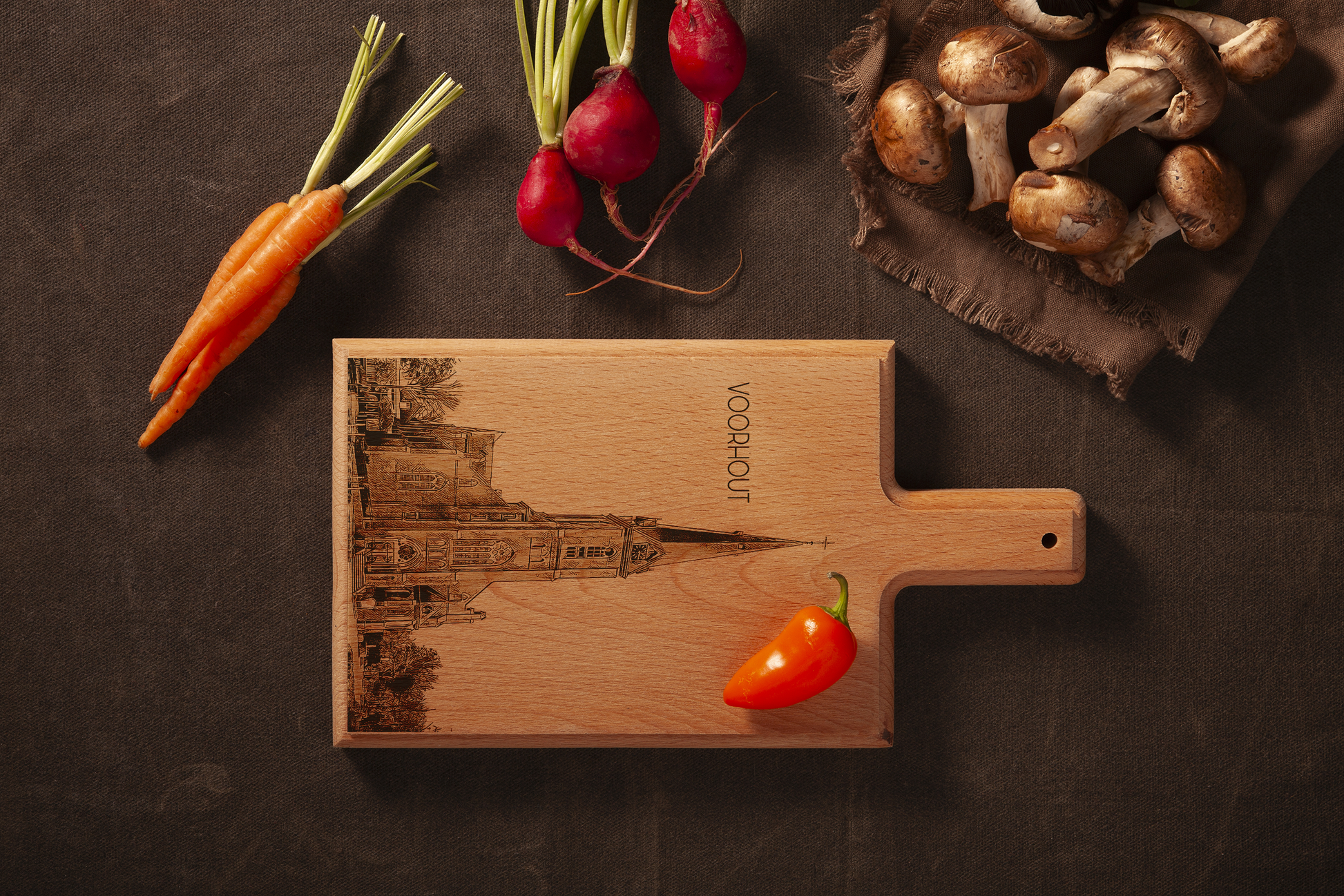 Handmade Voorhout Sint-Bartholomeükerk Engraved Cheese Board - Beech Wood