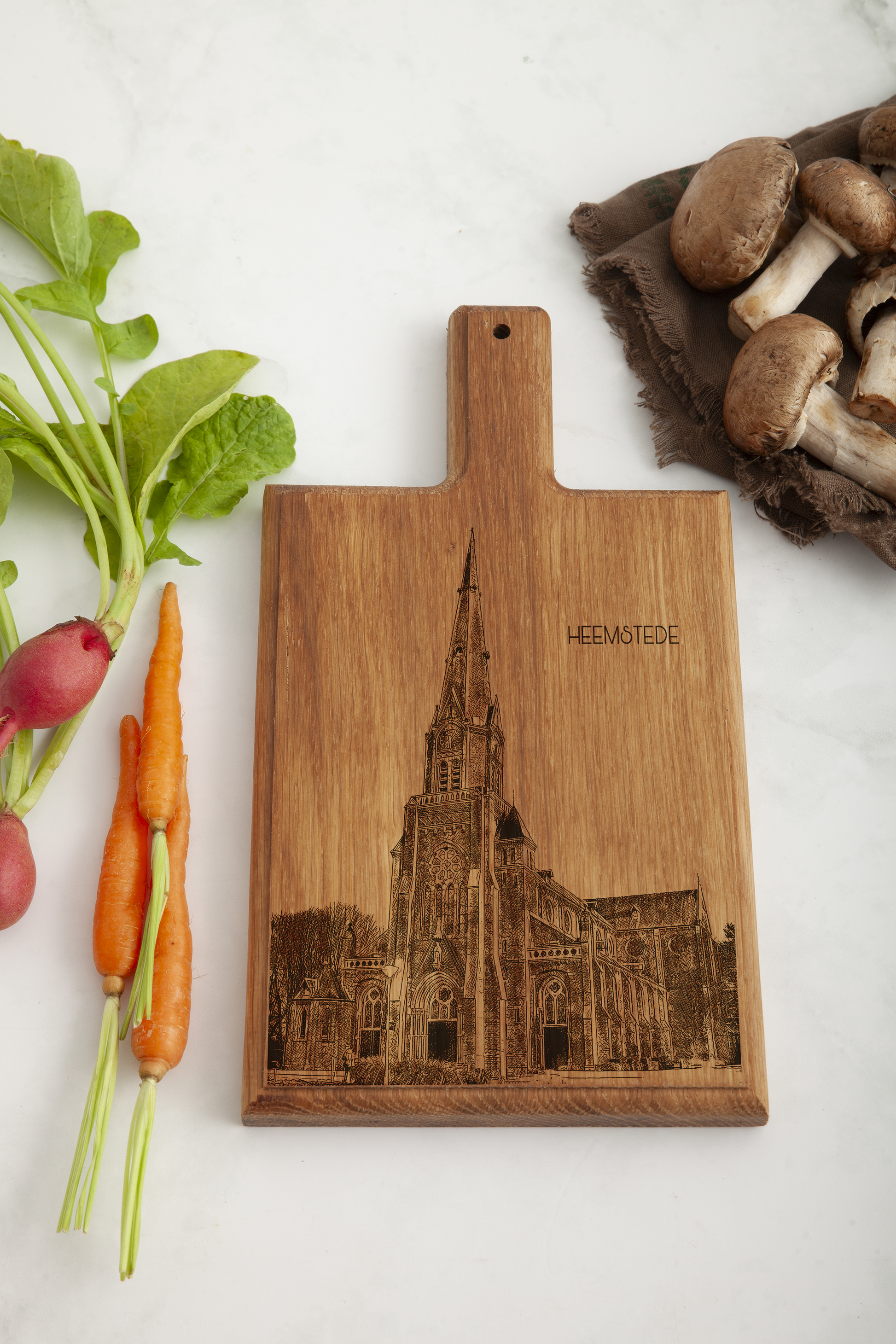 Inspired by the elegance of Heemstede, this handcrafted cheese board reflects the beauty and heritage of this picturesque Dutch town. Made from premium beech wood, it features a hand-drawn engraving inspired by Heemstede’s landmarks, perfect for adding sophistication to any gathering.
