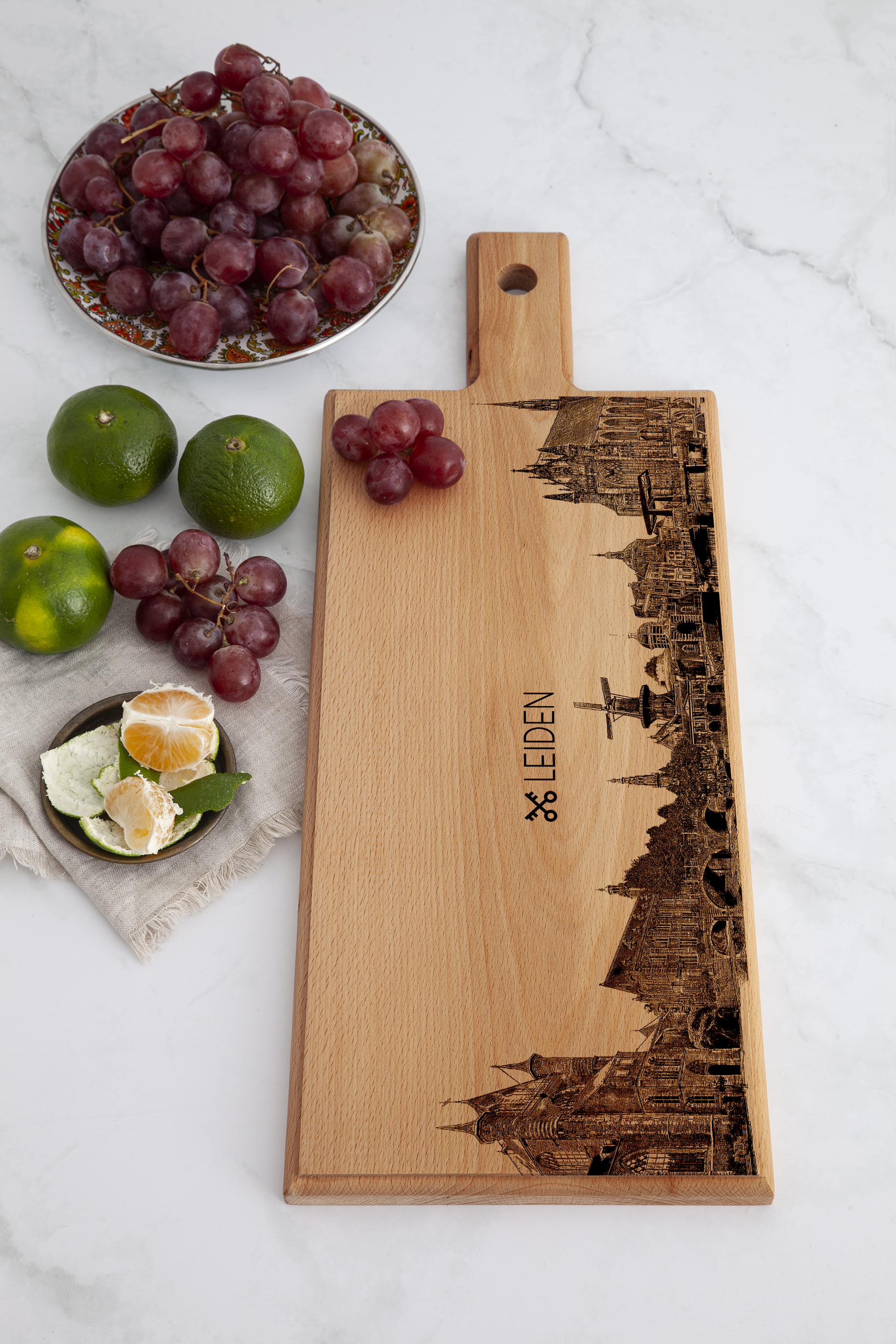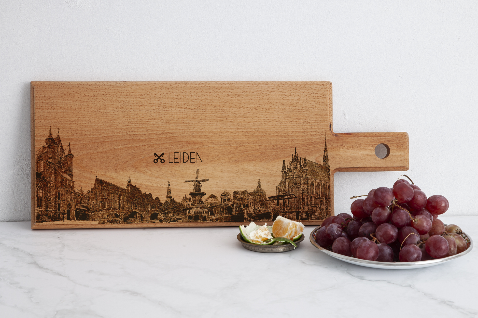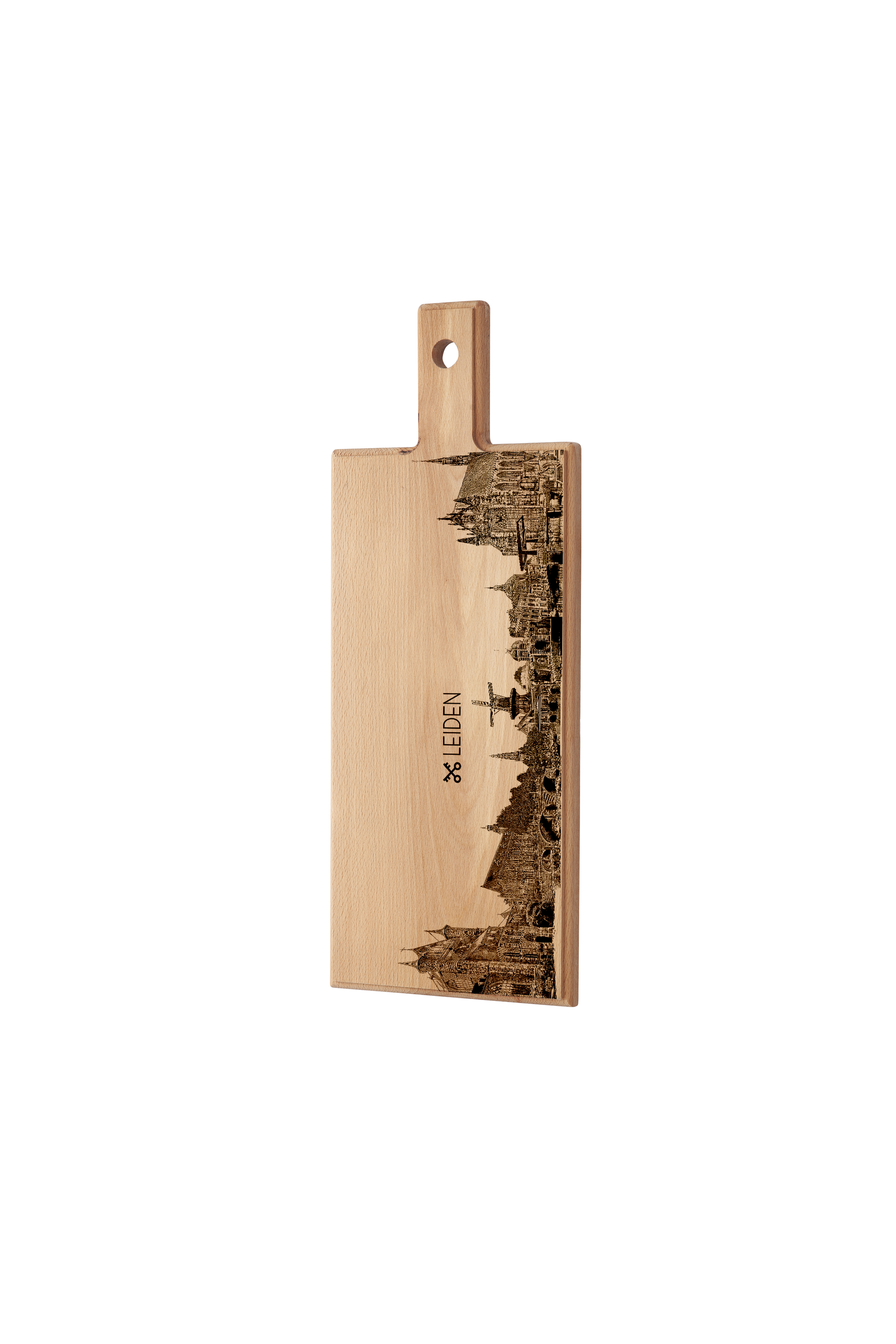Meticulously laser engraved, this serving board showcases a detailed silhouette of the Leiden skyline. Each outline, from the iconic university buildings to the majestic churches and canals, tells the story of the city's charm and allure. It's not just a kitchen accessory, it's a conversation starter.