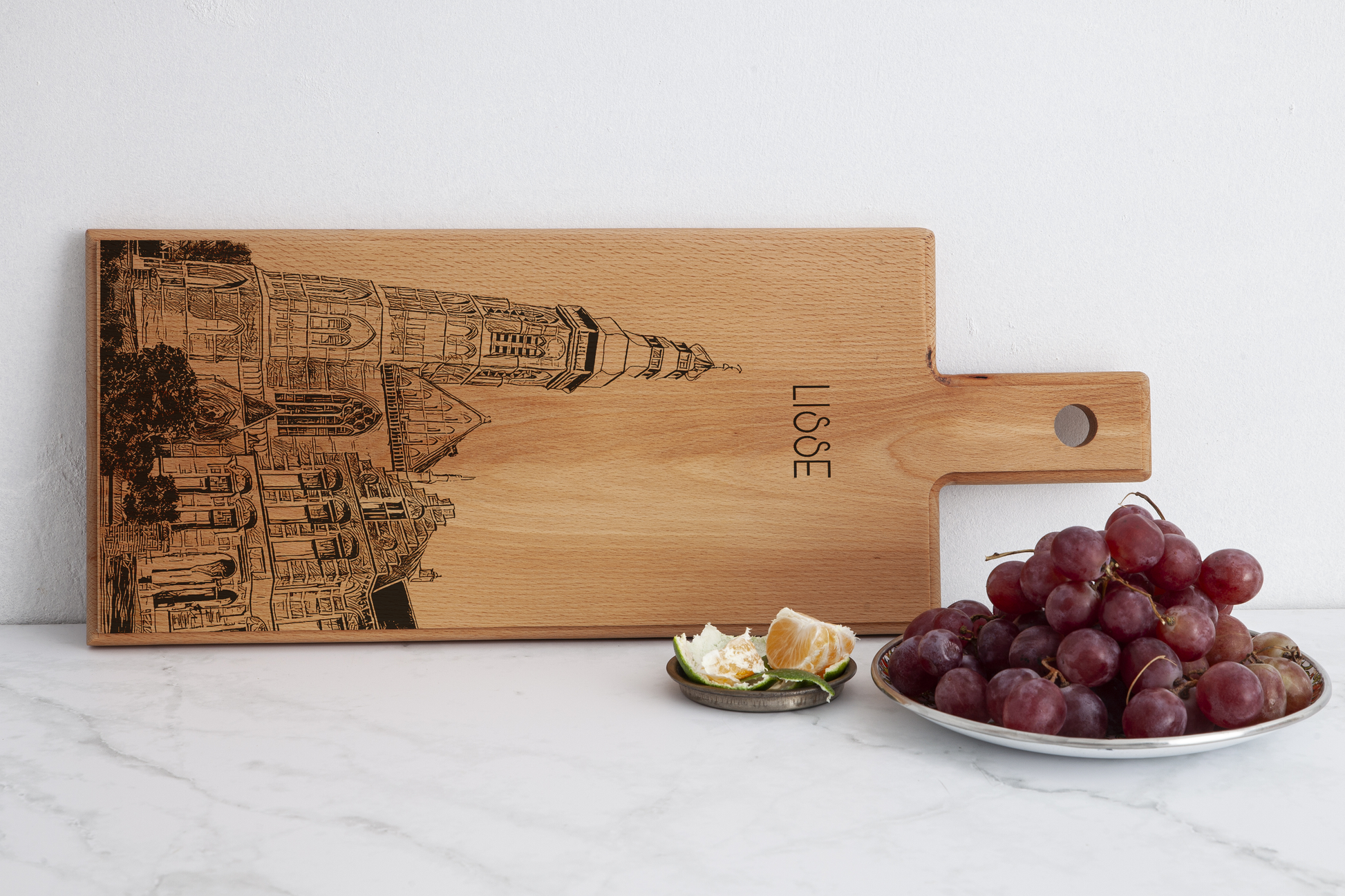 Each board is individually handmade and engraved, making every piece unique. The detailed church illustration highlights the architectural character of St. Agatha Church and transforms this board into a meaningful keepsake or refined decorative accent connected to Lisse.