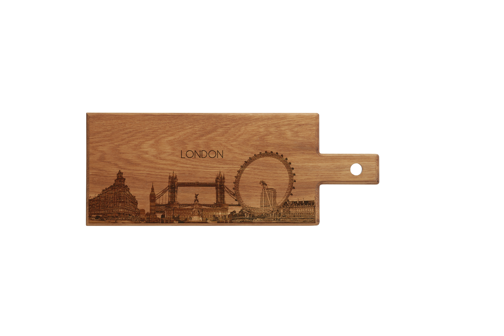 Each board is individually handmade and engraved, making every piece unique. The refined skyline composition captures London’s most recognizable landmarks along the Thames, transforming this board into a meaningful keepsake or a sophisticated decorative accent inspired by one of the world’s great cities.