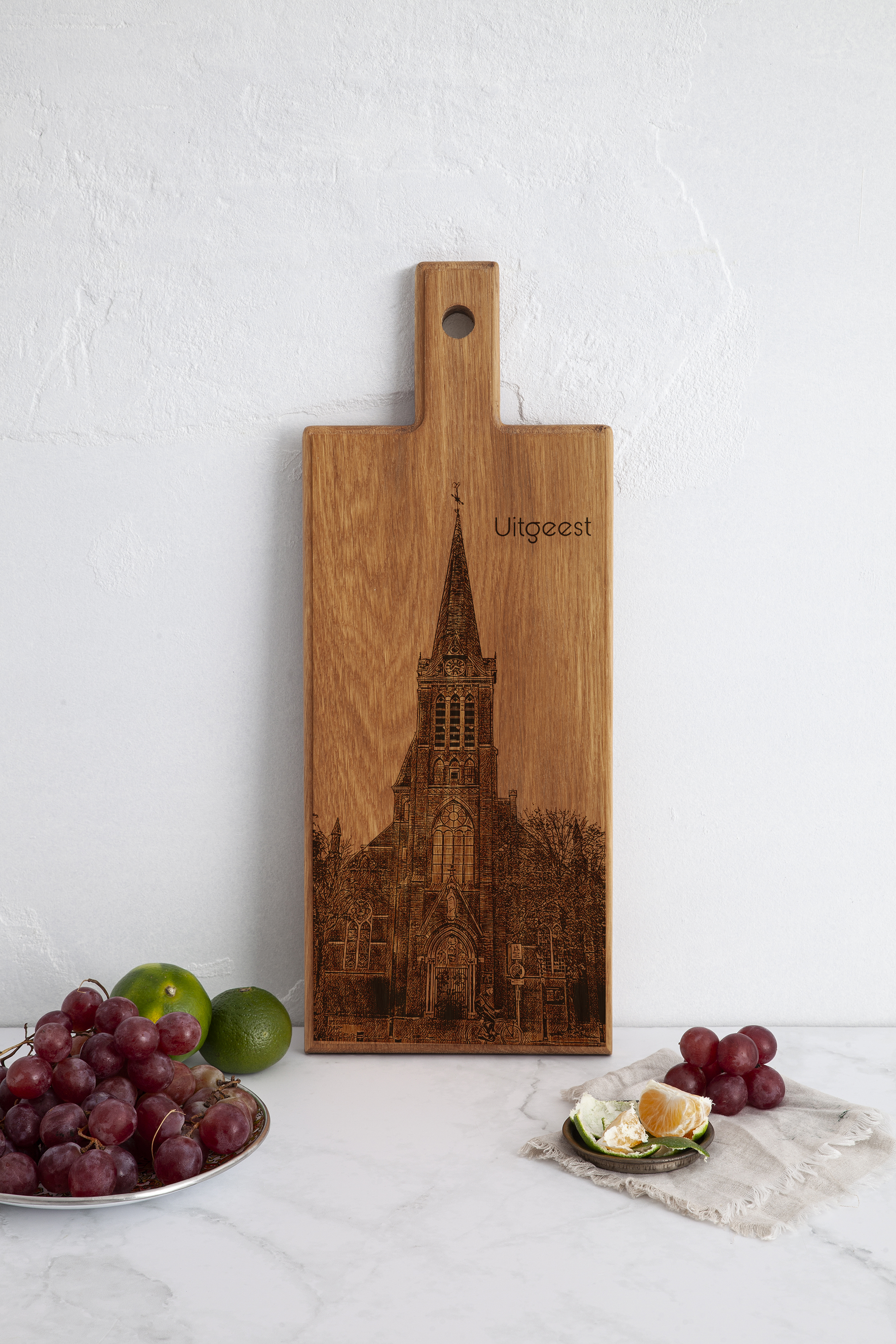 Bring the authentic village charm of Uitgeest into your kitchen with this handmade Uitgeest wooden serving board. Crafted in the Netherlands, this wooden serving board features a refined line-art illustration inspired by Uitgeest’s village character, surrounding waterways, and traditional Dutch atmosphere. Designed to combine everyday functionality with calm elegance, it is perfect for serving, presenting, or decorative display.