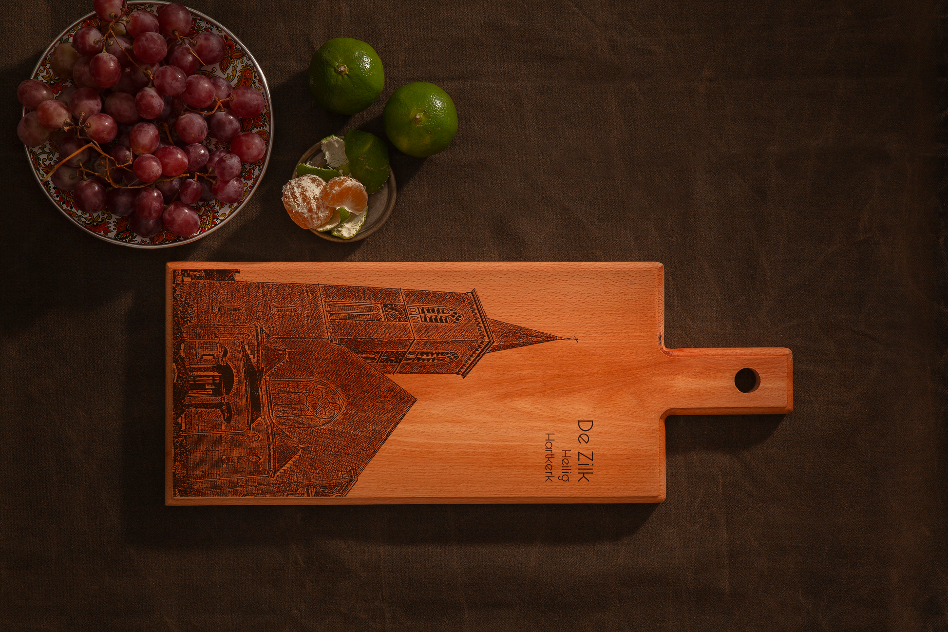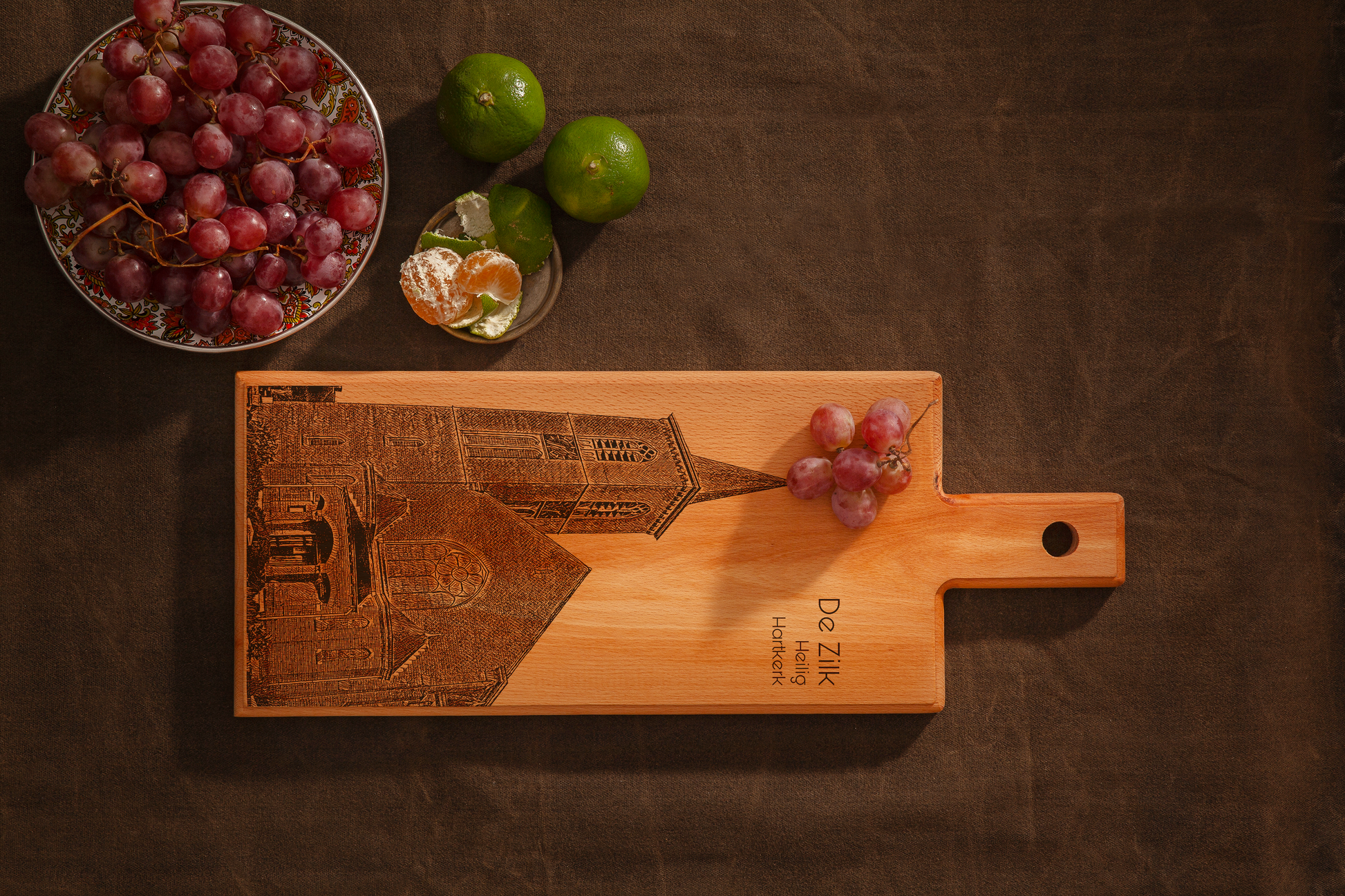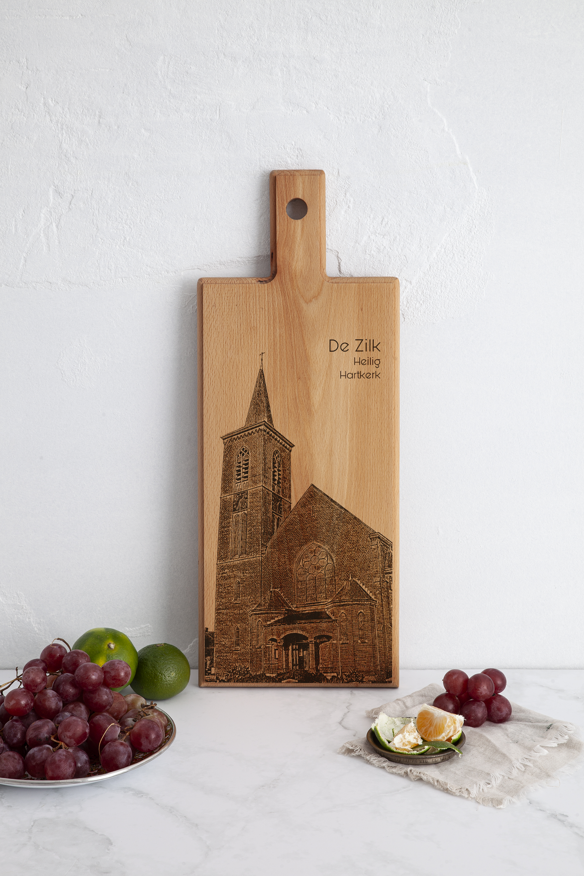 Haal het rustige dorpskarakter van De Zilk in huis met deze handgemaakte De Zilk houten serveerplank. Deze houten serveerplank is vervaardigd in Nederland en voorzien van een verfijnde lijntekening geïnspireerd op de dorpse sfeer, het omliggende groen en het karakteristieke landschap van De Zilk. Een stijlvolle combinatie van functionaliteit en tijdloze rust.