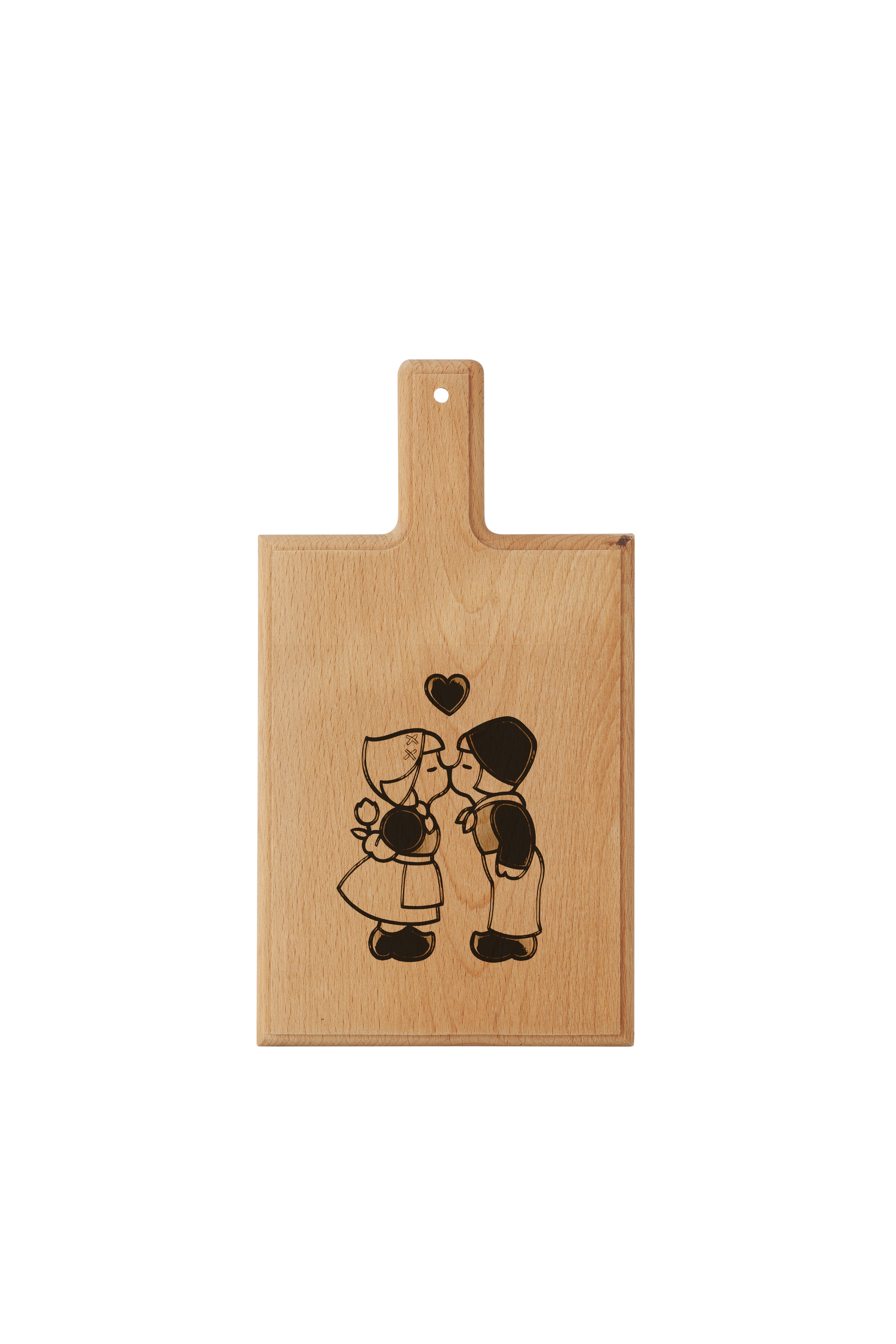 Deze charmante kaasplank, voorzien van een iconische gravure van een kussend Nederlands stel, is gemaakt van hoogwaardig beukenhout. Perfect voor een vleugje Nederlandse traditie of als bijzonder cadeau voor dierbaren.
