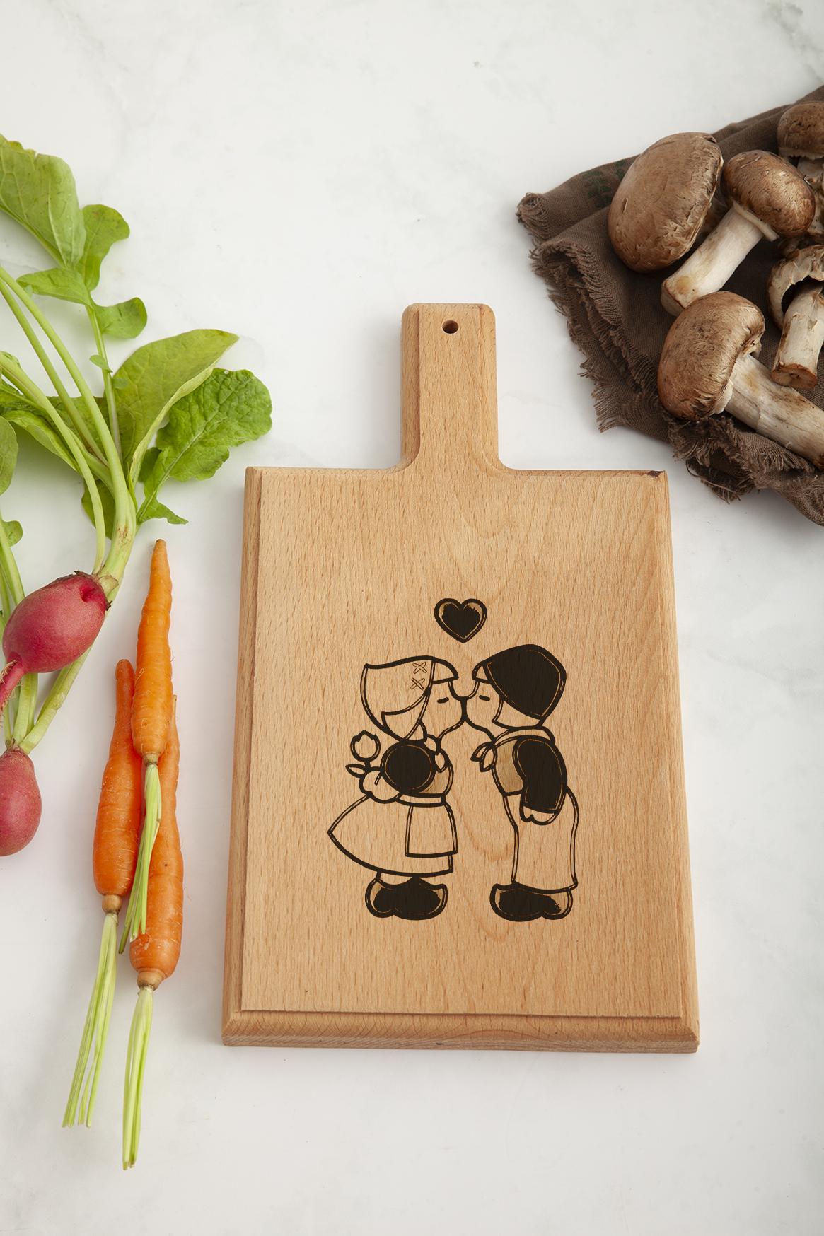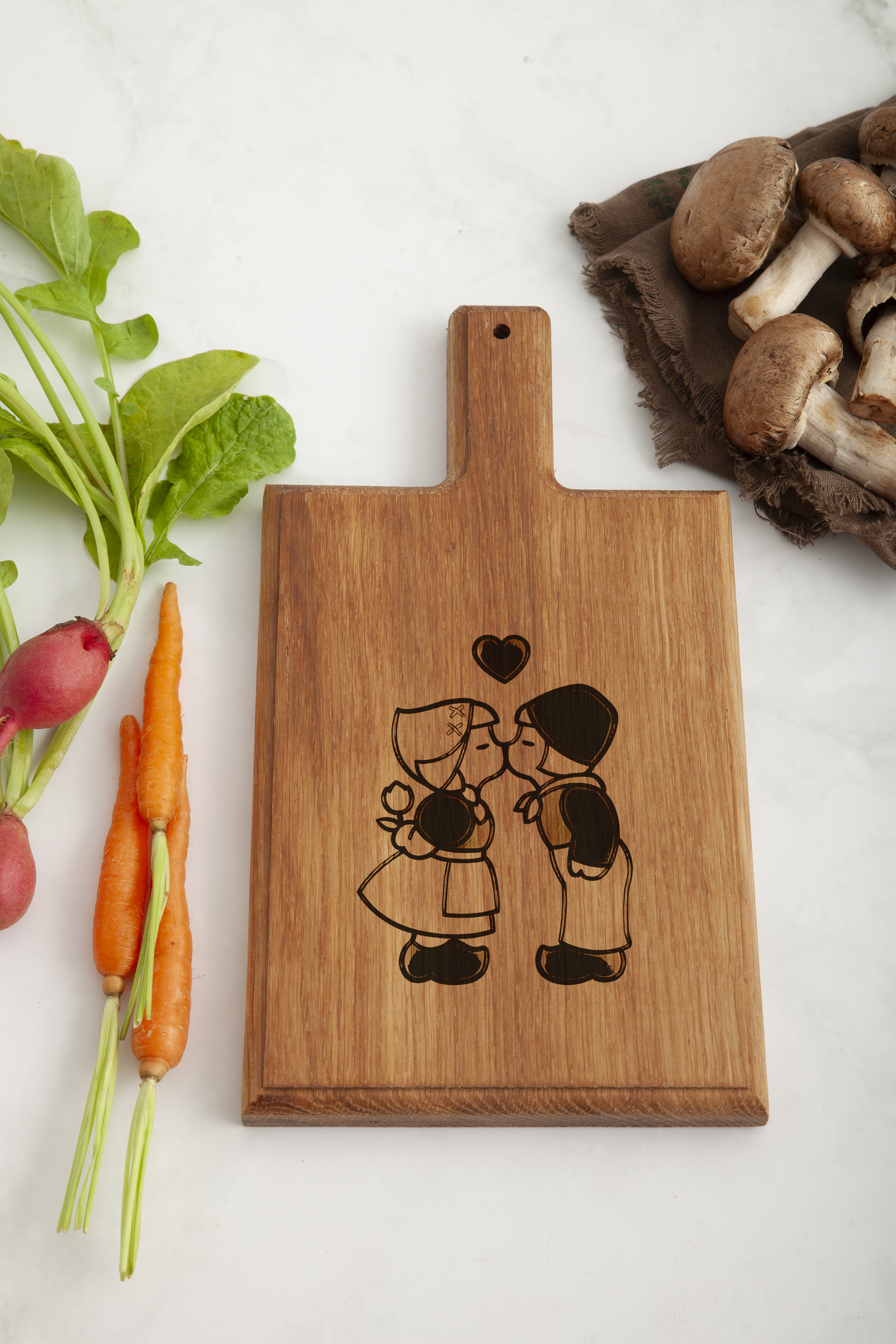 Omarm de essentie van Nederlandse cultuur en romantiek met deze unieke kaasplank, perfect voor uw keuken of als cadeau.