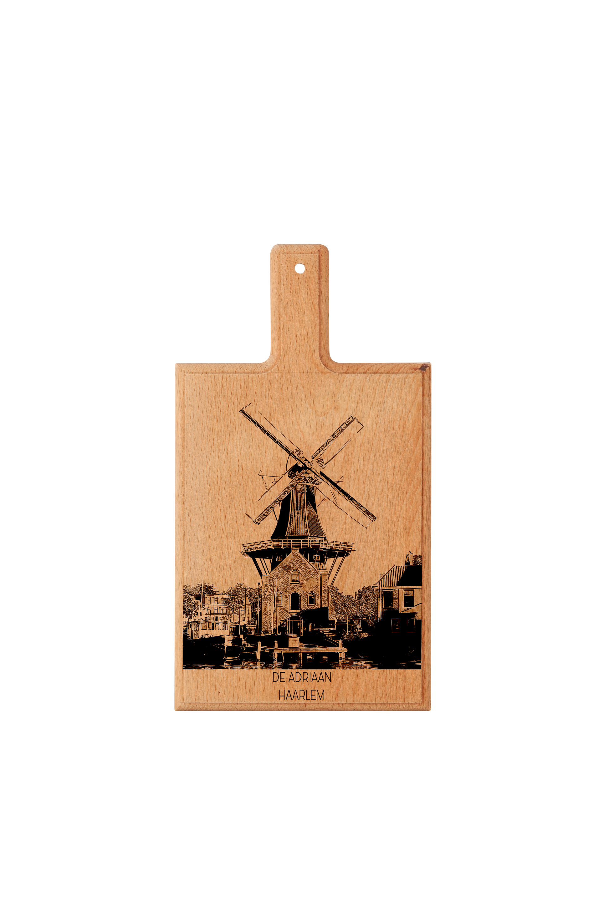 Voeg een vleugje Nederlandse elegantie toe aan uw keuken met onze Haarlem Molen De Adriaan Kaasplank!