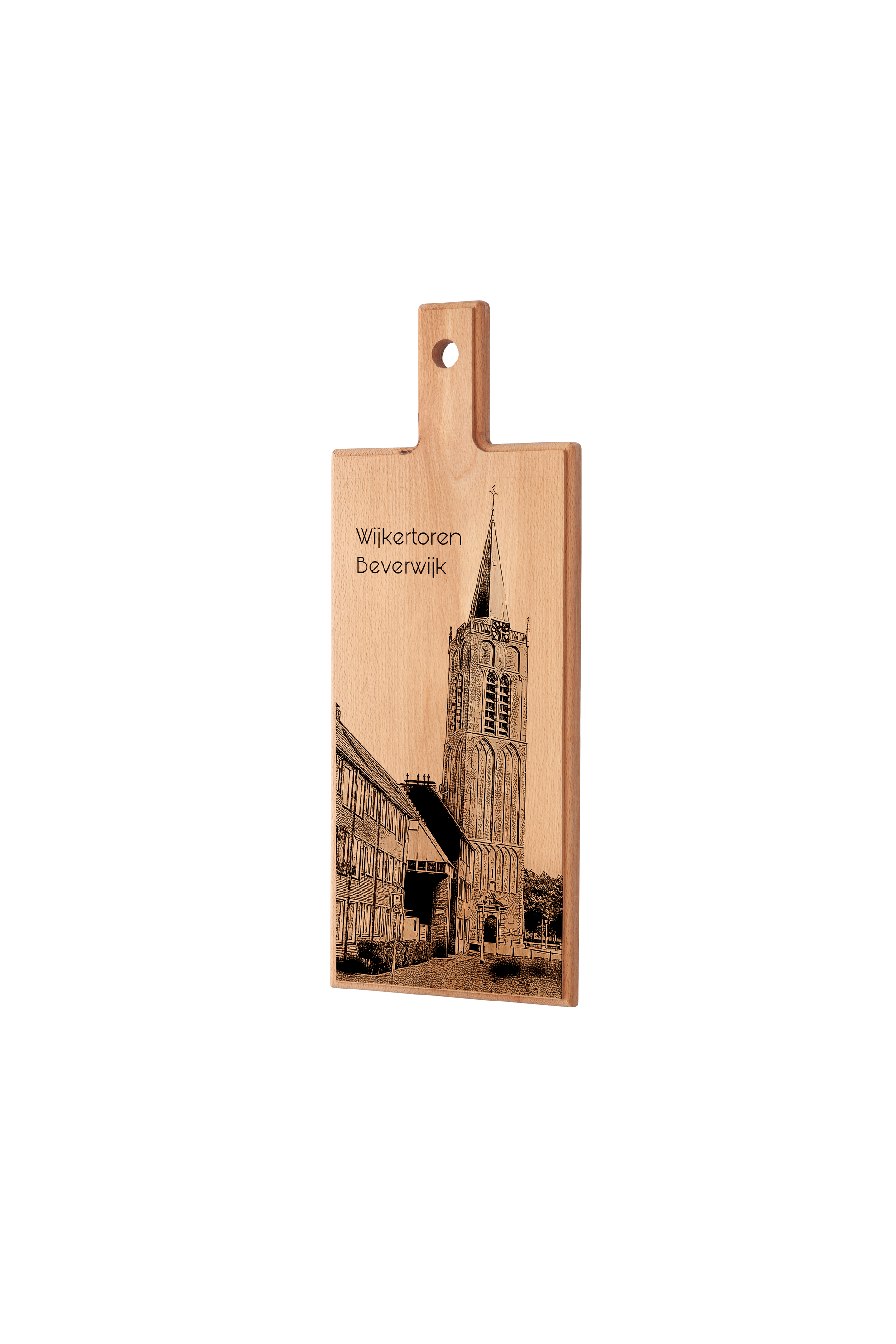 Handgemaakte Beverwijk Wijkertoren Gegraveerde Serveerplank - Beukenhout