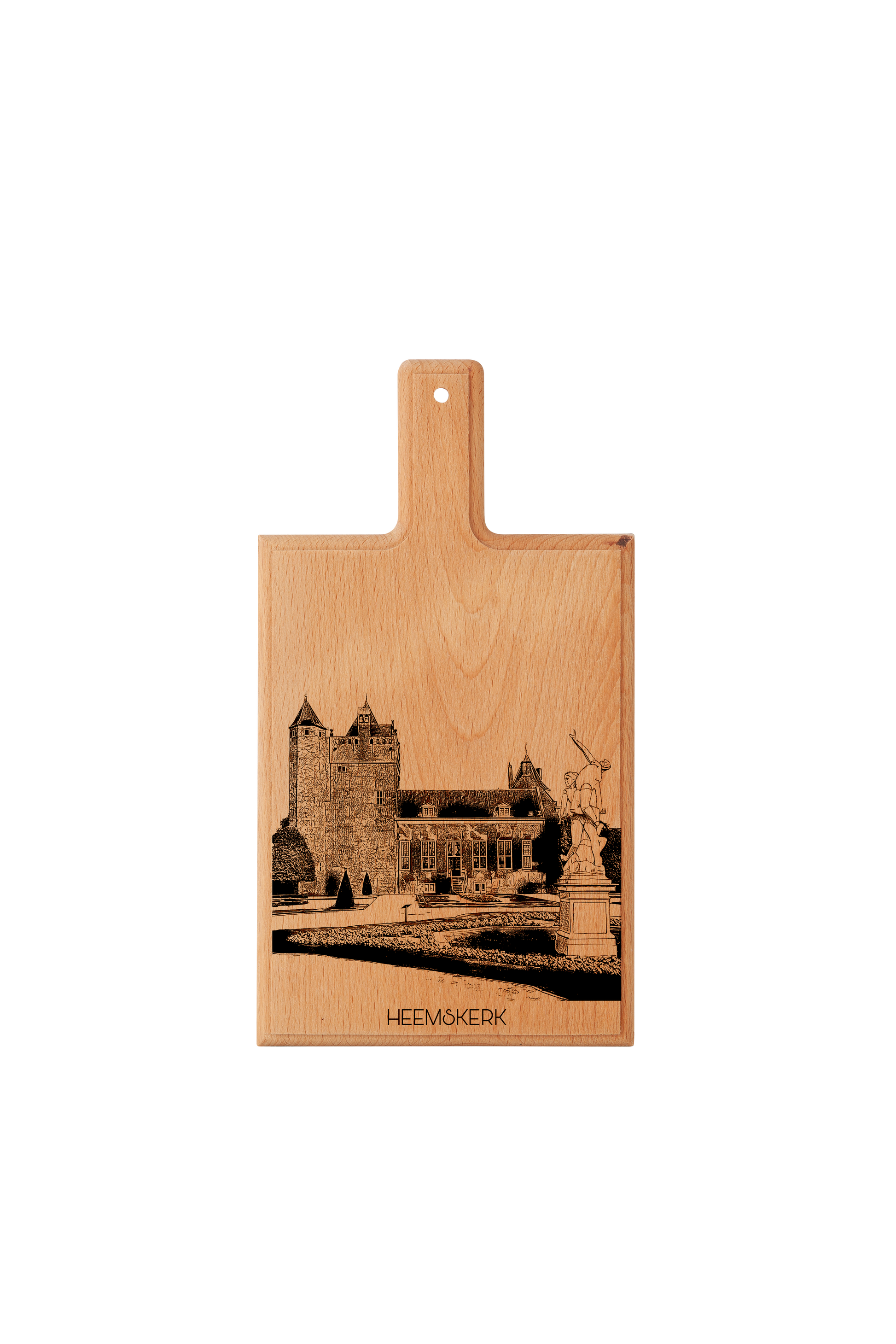 Geïnspireerd door het charmante dorp Heemskerk, brengt deze handgemaakte kaasplank een stukje Nederlandse schoonheid in uw keuken. Gemaakt van premium beukenhout, met een gedetailleerde gravure geïnspireerd door Heemskerk.