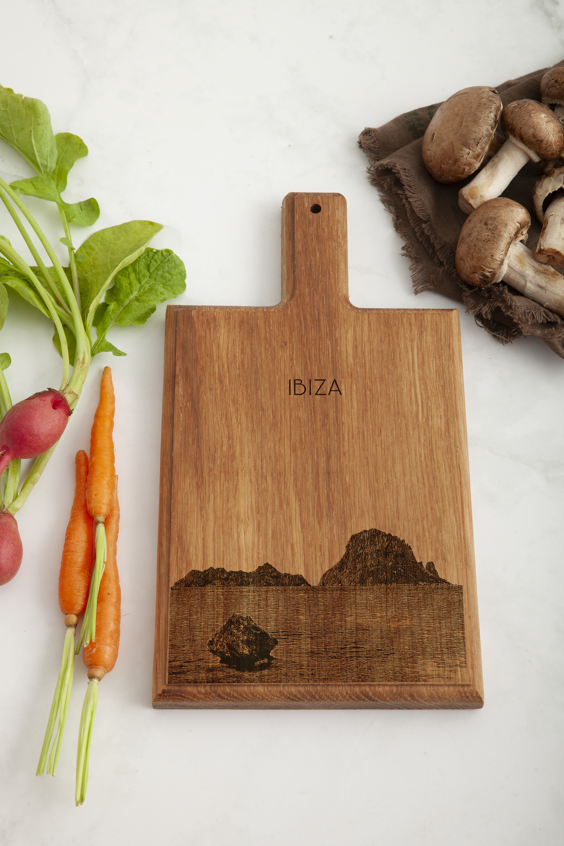 Elke kaasplank wordt afzonderlijk vervaardigd en gegraveerd, waardoor ieder exemplaar uniek is. Het ontwerp weerspiegelt de rotsachtige kustlijn en ontspannen sfeer van Ibiza en maakt deze plank tot een stijlvol aandenken aan het eilandleven.