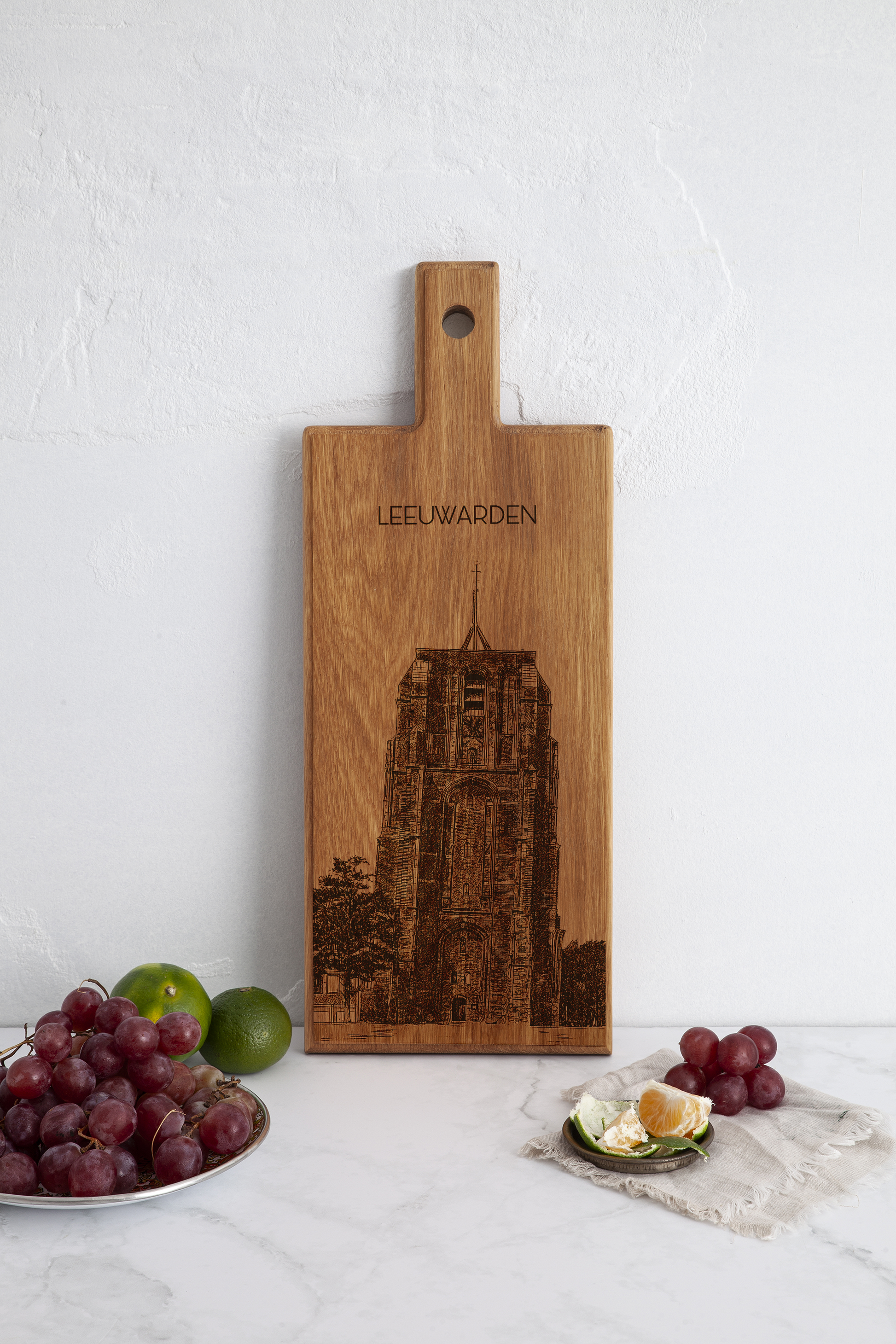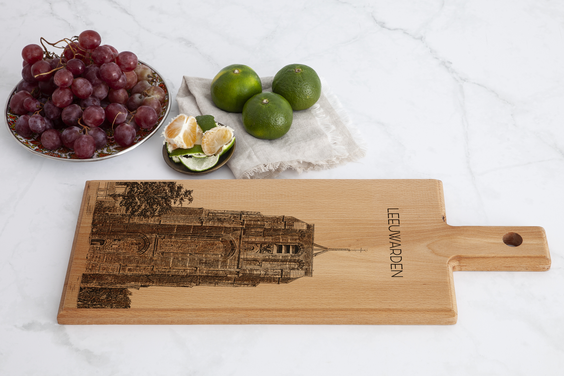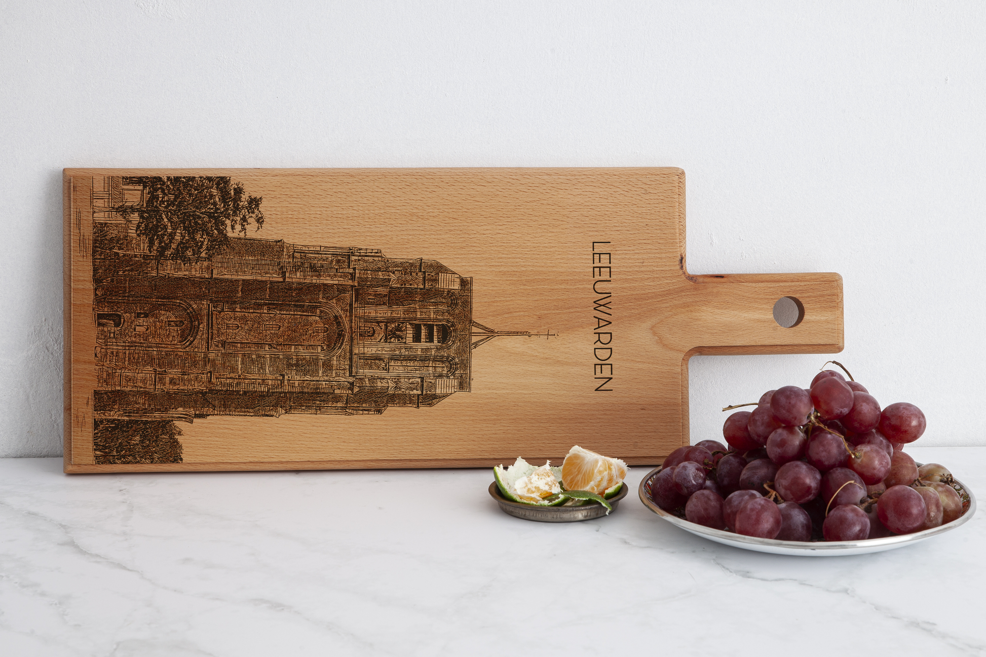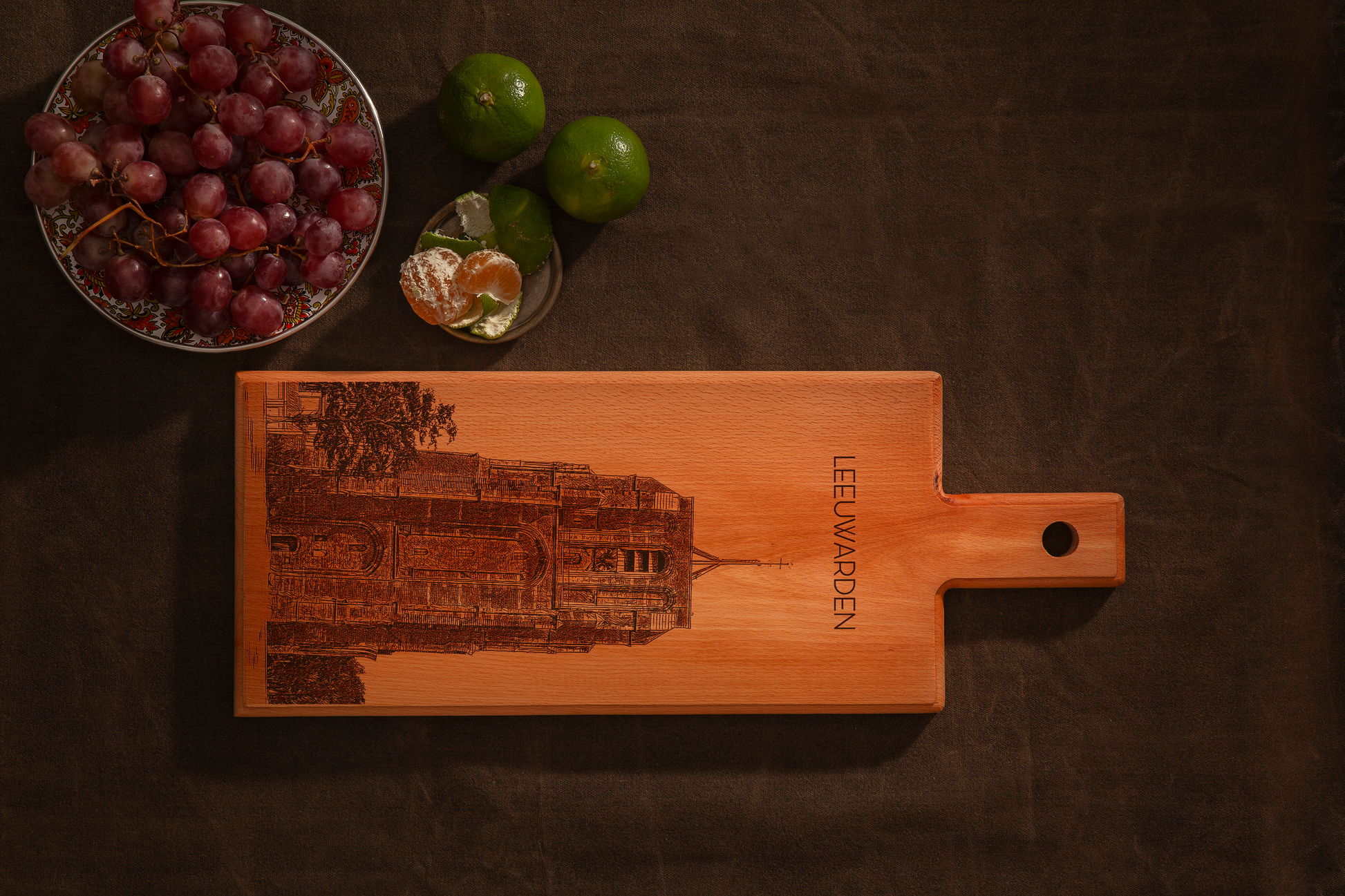 Geschikt als kaasplank, tapasplank of serveerplank, en ook prachtig als wanddecoratie. Een ideaal cadeau voor liefhebbers van Leeuwarden, Fries erfgoed, housewarmings, bruiloften of speciale momenten.