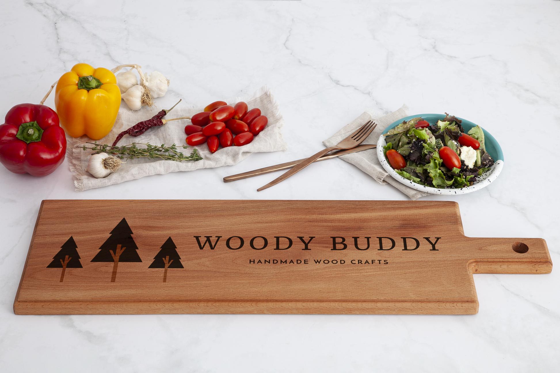 Elke plank wordt vervaardigd uit één stuk FSC-gecertificeerd beuken- of eikenhout, zorgvuldig geschuurd en afgewerkt met een natuurlijke, voedselveilige olie. Het extra lange oppervlak is perfect voor horizontale logo’s, langere teksten en strakke typografie, waardoor deze plank uitermate geschikt is voor horeca, restaurants, relatiegeschenken en premium branding.