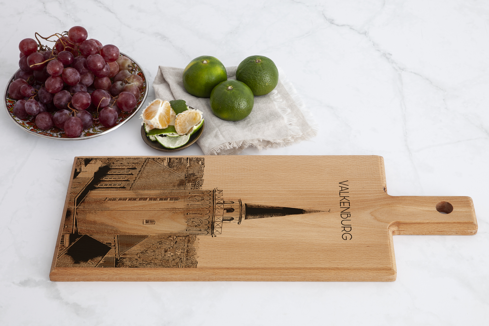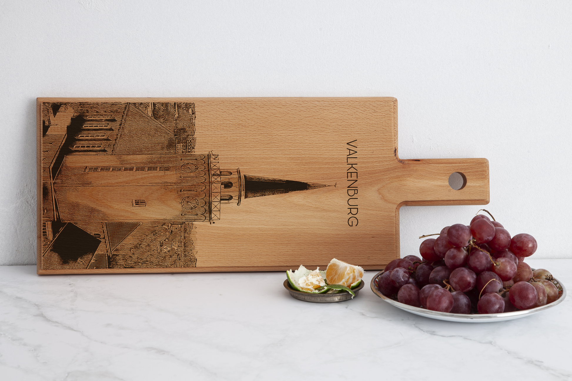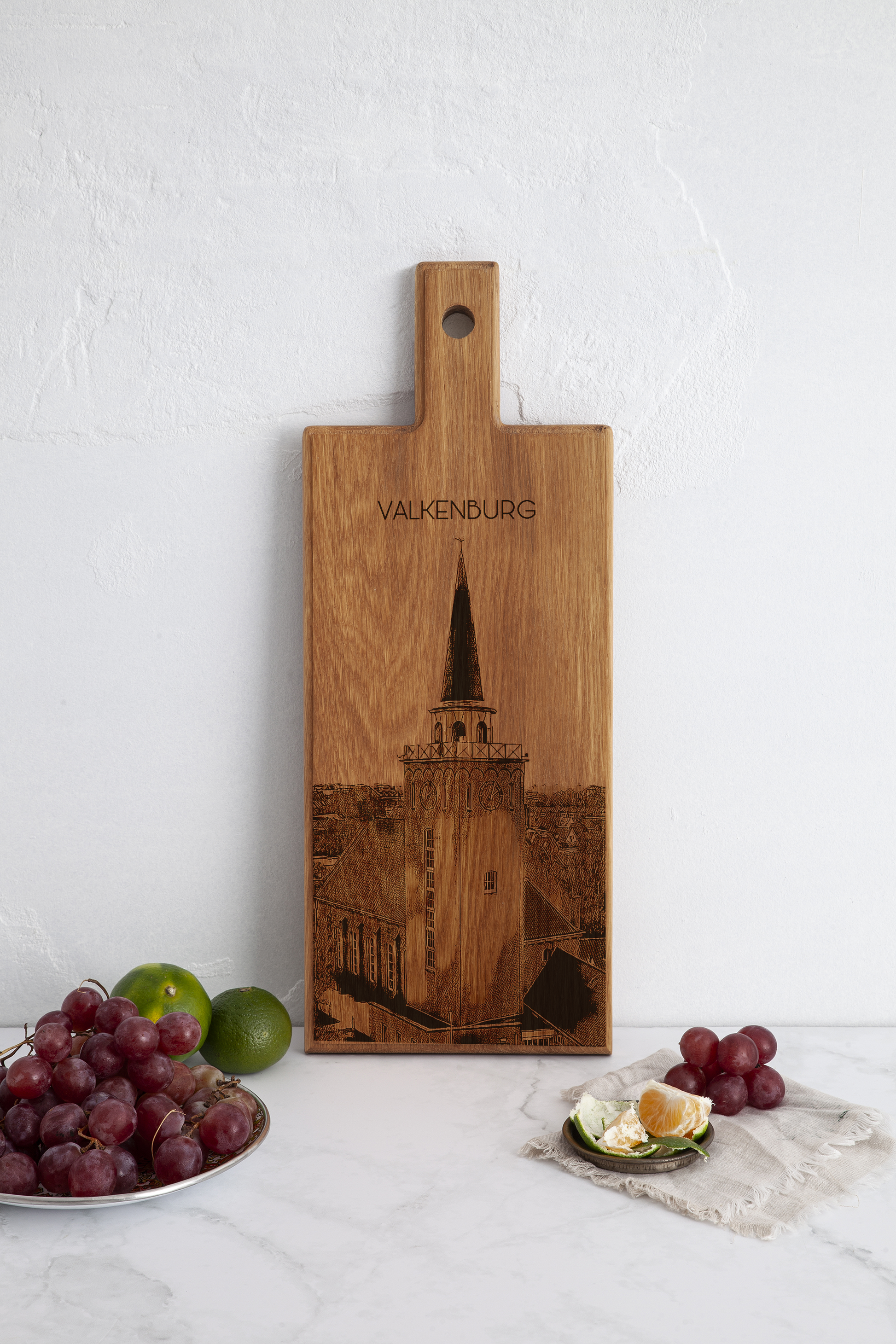 Elke plank wordt afzonderlijk vervaardigd en gegraveerd, waardoor ieder exemplaar uniek is. Het ontwerp weerspiegelt de sfeer van Valkenburg, bekend om zijn heuvelachtige landschap, historie en cultuur, en maakt deze plank tot een bijzonder aandenken of stijlvolle decoratie.