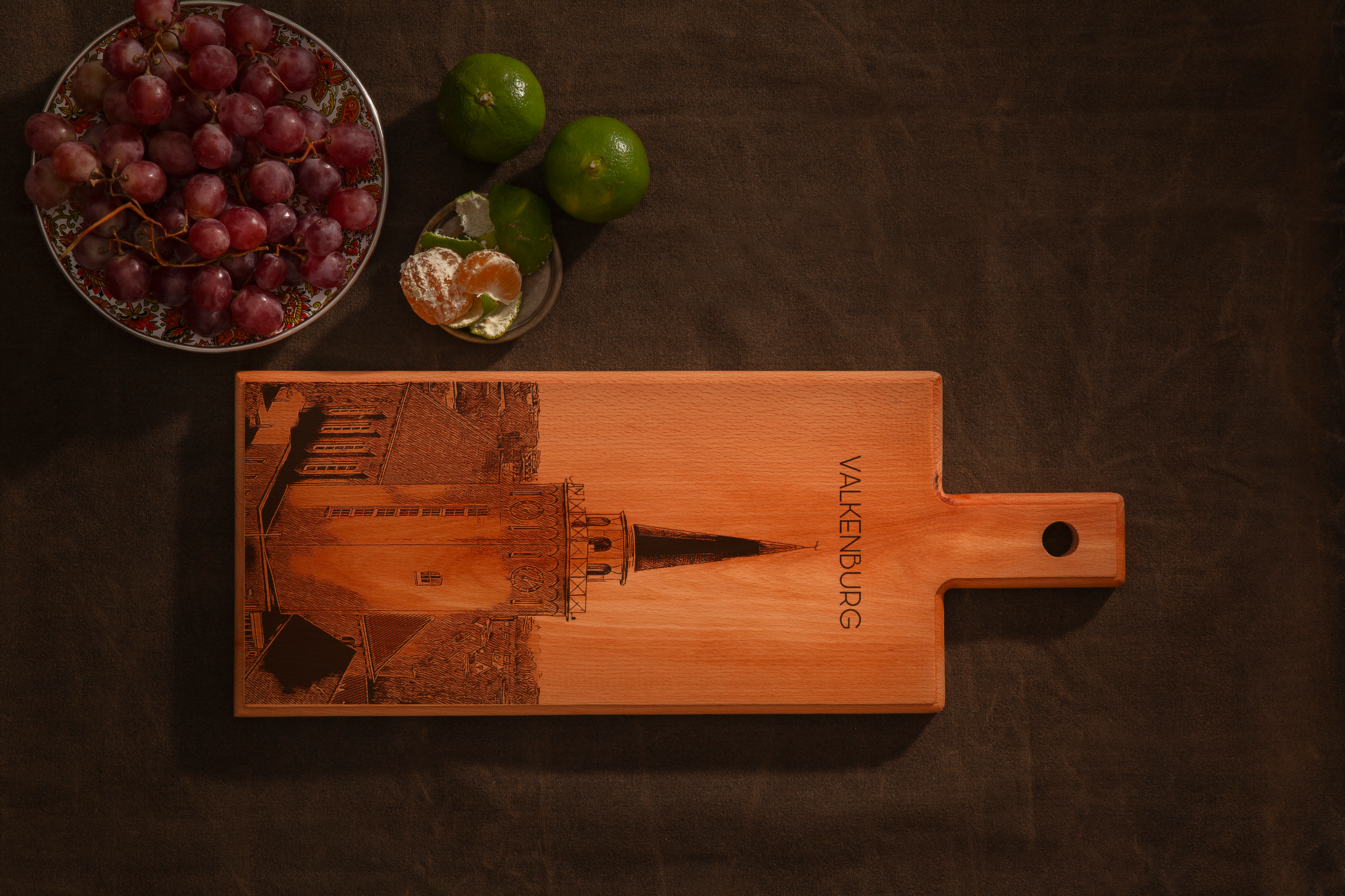 Geschikt als kaasplank, tapasplank of serveerplank, en ook prachtig als wanddecoratie. Een ideaal cadeau voor liefhebbers van Valkenburg, historische plaatsen, Nederlands erfgoed, housewarmings, bruiloften of speciale momenten.